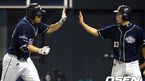 [OSEN=마산, 최규한 기자] 두산 베어스가 NC 다이노스를 꺾고 순위바꿈에 성공했다. 두산은 24일 마산구장에서 열린 '2015 타이어뱅크 KBO리그' NC와의 경기에서 초반부터 활발하게 터진 타선의 힘을 앞세워 9-3으로 승리했다. 49승 36
