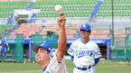 [OSEN=대구, 백승철 기자] 29일 오후 대구 대구시민야구장에서 열리는 '2015 타이어뱅크 KBO 리그' 삼성 라이온즈와 NC 다이노스의 경기 시작전 류중일 감독이 지켜보는 가운데 장원삼이 피칭을 하고 있다. 차우찬(삼성)과 이승호(NC)