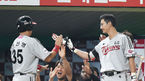 [OSEN=인천, 민경훈 기자] 1일 오후 인천SK행복드림구장에서 열린 '2015 타이어뱅크 KBO 리그' SK 와이번스와 LG 트윈스의 경기, 9회초 무사 주자 1,3루 LG 박지규의 스퀴즈번트때 홈을 밟은 이진영이 덕아웃에서 동료들과 하이파이브를