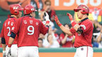 [OSEN=대전, 백승철 기자] 1일 오후 대전 한화생명 이글스 파크에서 열린 '2015 타이어뱅크 KBO 리그' 한화 이글스와 KIA 타이거즈의 경기 3회초 무사 1,2루 김주찬이 스리런포를 치고 신종길, 김민우와 하이파이브를 하고 있다. KIA 외