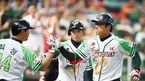 [OSEN=대전, 백승철 기자] 2일 오후 대전 한화생명 이글스 파크에서 열린 '2015 타이어뱅크 KBO 리그' 한화 이글스와 KIA 타이거즈의 경기 1회말 2사 만루 조인성의 2타점 적시타에 득점한 2루주자 정근우가 덕아웃에서 동료들과 하이