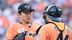 [OSEN=잠실, 민경훈 기자] 2일 오후 서울 잠실야구장에서 열린 '2015 타이어뱅크 KBO 리그' 두산 베어스와 삼성 라이온스의 경기, 1회초 2사 주자 1루 삼성 이승엽이 중견수 오른쪽 안타를 맞은 두산 선발 장원준이 양의지와 얘기를