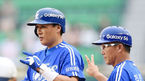 [OSEN=잠실, 민경훈 기자] 2일 오후 서울 잠실야구장에서 열린 '2015 타이어뱅크 KBO 리그' 두산 베어스와 삼성 라이온스의 경기, 1회초 2사 주자 1루 삼성 이승엽이 중견수 오른쪽 안타를 날린 후 1루에서 김평호 코치와 하이파이브