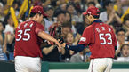 [OSEN=대전, 백승철 기자] 2일 오후 대전 한화생명 이글스 파크에서 열린 '2015 타이어뱅크 KBO 리그' 한화 이글스와 KIA 타이거즈의 경기 종료 후 김성근 감독이 새 용병 로저스와 인사를 나누고 있다. KIA가 한화와 3연전을 싹쓸이하