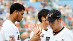 [OSEN=대전, 민경훈 기자] 7일 오후 대전 한화생명 이글스 파크에서 열린 '2015 타이어뱅크 KBO 리그' 한화 이글스와 LG 트윈스의 경기, 한화 선발 송은범이 1회를 마친 후 덕아웃에서 로저스와 하이파이브를 하고 있다. 이 날 한화와
