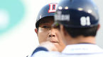 [OSEN=대전, 민경훈 기자] 7일 오후 대전 한화생명 이글스 파크에서 열린 '2015 타이어뱅크 KBO 리그' 한화 이글스와 LG 트윈스의 경기, 1회말 1사 주자 1,3루 한화 김태균이 선취 1타점 적시타를 날린 후 1루에서 임수민 코치와 하이파