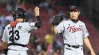 [OSEN=잠실, 백승철 기자] 8일 오후 서울 잠실구장에서 열린 '2015 타이어뱅크 KBO 리그' 두산 베어스와 LG 트윈스의 경기 종료 후 봉중근과 최경철이 하이파이브를 하고 있다. LG 트윈스가 접전 끝에 두산 베어스를 꺾고 2연승을 달