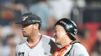 [OSEN=부산, 곽영래 기자] 11일 부산 사직구장에서 '2015 타이어뱅크 KBO 리그' 롯데 자이언츠와 SK 와이번스의 경기가 열렸다. 7회말 1사 1,2루 롯데 최준석이 1타점 적시타를 때린 뒤 김대익 코치와 기뻐하고 있다. 롯데는 우완 송승
