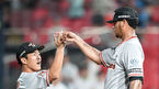 [OSEN=부산, 곽영래 기자] 11일 부산 사직구장에서 '2015 타이어뱅크 KBO 리그' 롯데 자이언츠와 SK 와이번스의 경기가 열렸다. 7회말 무사 1,2루 롯데 손아섭이 1타점 적시 2루타를 때린 뒤 김대익 코치와 하이파이브를 하고 있다. 롯