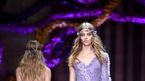 [OSEN=사진팀] 모델이 지난 8월 5일 프랑스 파리에서 열린 '2015-2016 가을/겨울 오트쿠튀르 패션쇼'에 참가한 이탈리아 패션 디자이너 도나텔라 베르사체의 의상을 입고 화려한 캣워크를 선보이고 있다. ⓒAFPBBNews = News1(무단전재 및