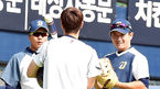 [OSEN=잠실, 곽영래 기자] 14일 오후 서울 잠실구장에서 '2015 타이어뱅크 KBO 리그' 두산 베어스와 NC 다이노스의 경기가 열렸다. 경기전 NC 이종욱, 손시헌이 두산 김재호와 이야기를 나누고 있다. 두산은 장원준을 선발로 내세웠다