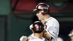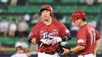 [OSEN=잠실, 백승철 기자] 17일 오후 서울 잠실구장에서 열린 '2015 타이어뱅크 KBO 리그' LG 트윈스와 KIA 타이거즈의 경기 4회초 2사 2루 이범호가 1타점 2루타를 치고 김태룡 코치에게 보호장비를 건내고 있다. LG 트윈스와 KIA 타이거