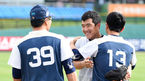 [OSEN=대전, 이대선 기자] 18일 오후 대전 한화생명이글스파크에서 열릴 '2015 타이어뱅크 KBO 리그' 한화 이글스와 NC 다이노스의 경기에 앞서 한화 정근우가 NC 이종욱, 손시헌과 인사를 나누고 있다. 한화는 2군에 내려보냈던 외국