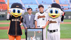 [OSEN=부산, 정송이 기자] 21일 오후 부산 사직구장에서 열린 '2015 타이어뱅크 KBO 리그' 롯데 자이언츠와 KIA 타이거즈의 경기에 앞서 700경기 출장을 달성한 롯데 강영식이 이창원 대표이사와 포토타임을 하고 있다. 롯데는 린드블