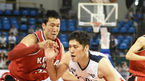 [OSEN=잠실학생체, 지형준 기자] '2015 KCC 프로-아마 최강전' 고려대학교와 울산 모비스의 준결승 경기가 21일 오후 서울 잠실학생체육관에서 열렸다. 1쿼터 모비스 김종근이 고려대 이종현의 수비를 피해 페이드 어웨이를 시도하
