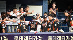 [OSEN=잠실, 지형준 기자] 15일 오후 서울 잠실야구장에서 '2015 타이어뱅크 KBO 리그' 두산 베어스와 롯데 자이언츠의 경기가 열렸다. 1회초 2사 2루에서 롯데 손아섭이 강민호의 선제 1타점 중전 적시타에 홈을 밟고 동료선수들과