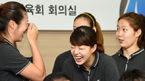[OSEN=지형준 기자] 여자농구대표팀이 26일 오전 서울 올림픽 파크텔에서 제 26뢰 FIBA 아시아여자농구선수권대회 결단식을 가졌다. 이경은이 포토타임을 하며 웃음을 터뜨리고 있다. 대표팀은 이미선(36, 삼성), 신정자(35, 신한은
