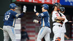 [OSEN=부산,박준형 기자] 29일 오후 부산 사직구장서 열린 '2015 타이어뱅크 KBO리그' 롯데 자이언츠와 NC 다이노스의 경기,2회초 1사 2,3루 NC 지석훈이 역전 3점 홈런을 날리고 동료들의 축하를 받고 있다. 이날 경기서 롯데와 NC는 레