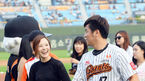 [OSEN=부산,박준형 기자] 29일 오후 부산 사직구장서 열린 '2015 타이어뱅크 KBO리그' 롯데 자이언츠와 NC 다이노스의 경기 강민호의 약혼녀 신소연 기상캐스터가 야구장을 찾아 예비신랑을 위한 깜짝 이벤트를 가졌다. 이날 강민호