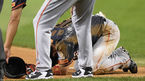 [OSEN=잠실, 김경섭 기자] 30일 오후 서울 잠실야구장에서 열린 '2015 타이어뱅크 KBO 리그' 두산 베어스와 한화 이글스의 경기, 5회초 한화 선두타자 이용규가 안타를 치고 1루로 진루하다 수비의 발에 걸려 넘어져 고통스러워하고