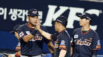 [OSEN=잠실, 김경섭 기자] 30일 오후 서울 잠실야구장에서 열린 '2015 타이어뱅크 KBO 리그' 두산 베어스와 한화 이글스의 경기, 4회말 2사 1,3루 한화 정근우가 두산 김재호의 타구를 처리해 이닝을 종료시킨뒤 선수들과 기쁨을 나누