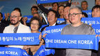 [OSEN=박준형 기자] 1일 오전 서울 세종문화회관 세종홀에서 진행된 '새시대 통일의 노래 캠페인' 기자간담회에서 참석자들이 포토타임을 갖고 있따. 'ONE DREAM ONE KOREA(하나된 꿈 하나된 코리아)'의 모토로 전개되는 '새시대 통일의