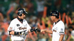 [OSEN=청주, 지형준 기자] 2일 오후 청주야구장에서 '2015 타이어뱅크 KBO 리그' 한화 이글스와 KIA 타이거즈의 경기가 열렸다. 3회말 무사에서 한화 권용관이 솔로포를 날리고 정근우와 하이파이브를 하고 있다. KIA는 에이스 양현종