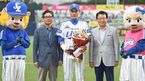 [OSEN=대구, 최규한 기자] 5일 오후 대구구장에서 '2015 타이어뱅크 KBO 리그' 삼성 라이온즈와 KIA 타이거즈의 경기가 열렸다. 경기 시작을 앞두고 개인 통산 3,500루타 기록을 달성한 삼성 이승엽이 KBO 양해영 사무총장, 삼성 라이온