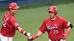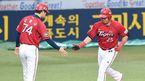 [OSEN=대구, 최규한 기자] 5일 오후 대구구장에서 '2015 타이어뱅크 KBO 리그' 삼성 라이온즈와 KIA 타이거즈의 경기가 열렸다. 2회초 KIA 공격 1사 주자없는 상황 이범호가 선제 좌월 솔로포를 날리고 김종국 코치와 인사를 나누며 그