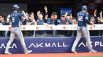 [OSEN=수원, 이대선 기자] 6일 오후 경기 수원 케이티위즈파크에서 '2015 타이어뱅크 KBO 리그 kt 위즈와 NC 다이노스의 경기가 열렸다. 3회초 1사 만루에서 NC 테임즈의 우전 적시타 때 홈을 밟은 김종호와 김태군이 덕아웃에서 동료