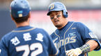 [OSEN=수원, 이대선 기자] 6일 오후 경기 수원 케이티위즈파크에서 '2015 타이어뱅크 KBO 리그 kt 위즈와 NC 다이노스의 경기가 열렸다. 3회초 1사 2,3루에서 NC 이호준의 우중간 적시타 때 홈을 밟은 테임즈와 나성범이 더그아웃에서