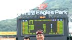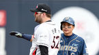 [OSEN=대전, 최규한 기자] 6일 오후 대전 한화생명이글스파크에서 '2015 타이어뱅크 KBO리그' 한화 이글스와 두산 베어스의 경기가 열렸다. 경기 시작을 앞두고 KBO리그 최초 10년 연속 20도루 기록을 달성한 정근우가 김태균과 기념