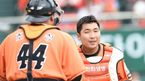 [OSEN=대전, 최규한 기자] 6일 오후 대전 한화생명이글스파크에서 '2015 타이어뱅크 KBO리그' 한화 이글스와 두산 베어스의 경기가 열렸다. 3회초 두산 공격 2사 1, 3루 상황 오재원을 내야 땅볼로 이끌며 실점없이 이닝을 막아낸 한