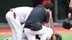 [OSEN=수원, 이대선 기자] 6일 오후 경기 수원 케이티위즈파크에서 '2015 타이어뱅크 KBO 리그 kt 위즈와 NC 다이노스의 경기가 열렸다. 4회초 1사 1,3루에서 kt 포수 장성우가 투구를 맞고 고통스러워하고 있다. kt는 크리스 옥스프링(38