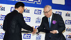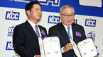 [OSEN=박준형 기자] 7일 오전 서울 강남구 반포동 소재 JW메리어트호텔 그랜드 볼룸에서 열린 2015-2016시즌 개막 미디어데이, 타이틀 스폰서 협약식서 김영기 KBL 총재와 이윤주 KCC 본부장이 포즈를 취하고 있다. 이번 행사에는 10개