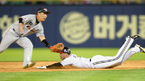 [OSEN=잠실, 이대선 기자] 8일 오후 서울 잠실야구장에서 '2015 타이어뱅크 KBO리그' LG 트윈스와 한화 이글스의 경기가 열렸다. 5회초 1사 1루에서 한화 권용관 안타 때 1루주자 정현석이 3루에서 슬라이딩을 하고 있다. 한화 이글스