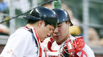 [OSEN=잠실, 이대선 기자] 8일 오후 서울 잠실야구장에서 '2015 타이어뱅크 KBO리그' LG 트윈스와 한화 이글스의 경기가 열렸다. 1회초 1사 1,2루에서 한화 최진행이 우월 스리런 홈런을 치고 김광수 코치와 하이파이브를 하고 있다.