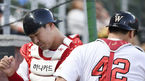 [OSEN=잠실, 이대선 기자] 8일 오후 서울 잠실야구장에서 '2015 타이어뱅크 KBO리그' LG 트윈스와 한화 이글스의 경기가 열렸다. 1회초 1사 1,2루에서 한화 최진행이 우월 스리런 홈런을 치고 더그아웃에서 동료들과 하이파이브를 하