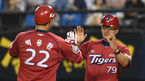 [OSEN=부산, 지형준 기자] 10일 오후 부산 사직구장에서 '2015 타이어뱅크 KBO 리그' 롯데 자이언츠와 삼성 라이온즈의 경기가 열렸다. 6회말 2사 1,2루에서 롯데 황재균이 동점 적시타를 날리고 김대익 코치와 하이파이브를 하고 있