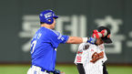 [OSEN=부산, 지형준 기자] 10일 오후 부산 사직구장에서 '2015 타이어뱅크 KBO 리그' 롯데 자이언츠와 삼성 라이온즈의 경기가 열렸다. 4회말 2사에서 삼성 채태인이 2루타를 날리고 롯데 정훈과 인사를 나누고 있다. 삼성은 클로이드