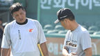 [OSEN=부산, 지형준 기자] 10일 오후 부산 사직구장에서 '2015 타이어뱅크 KBO 리그' 롯데 자이언츠와 삼성 라이온즈의 경기가 열린다. 경기에 앞서 롯데 이종운 감독과 삼성 류중일 감독이 이야기를 나누고 있다. 삼성은 클로이드