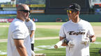[OSEN=대전,박준형 기자] 10일 오후 대전 한화생명이글스파크에서 열리는 2015 타이어뱅크 KBO리그 한화 이글스 SK 와이번스의 경기에 앞서 훈련 마친 한화 폭스와 권용관이 이야기를 나누고 있다. 한화는 외국인 투수 미치 탈보트