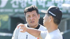 [OSEN=대전,박준형 기자] 10일 오후 대전 한화생명이글스파크에서 열리는 2015 타이어뱅크 KBO리그 한화 이글스 SK 와이번스의 경기에 앞서 한화 김성근 감독이 김태균과 이야기를 나누고 있다. 한화는 외국인 투수 미치 탈보트가