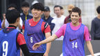 [OSEN=부산,박준형 기자] 12일 오후 부산 해운대구 수영만 요트경기장서 열린 '나이키컵' & '나이키 바스켓볼 3on3' 부산 지역 결선, 나이키컵 이벤트 경기서 제국의 아이들 동준이 상대편 선수와 악수를 나누고 있다. 올해로 7회