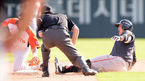 [OSEN=부산, 이대선 기자] 13일 오후 부산 사직야구장에서 '2015 타이어뱅크 KBO리그' 롯데 자이언츠와 한화 이글스의 경기가 열렸다. 8회초 2사에서 한화 조인성이 좌중간 2루타를 치고 슬라이딩을 하고 있다. 롯데는 린드블럼을 선