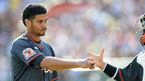 [OSEN=부산, 이대선 기자] 13일 오후 부산 사직야구장에서 '2015 타이어뱅크 KBO리그' 롯데 자이언츠와 한화 이글스의 경기가 열렸다. 6회말 2사에서 한화 로저스가 롯데 최준석을 삼진으로 처리하고 포수 조인성과 하이파이브를 하