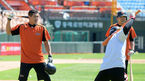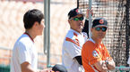 [OSEN=부산, 이대선 기자] 13일 오후 부산 사직야구장에서 열릴 '2015 타이어뱅크 KBO리그' 롯데 자이언츠와 한화 이글스의 경기에 앞서 한화 정근우가 쇼다 코치와 이야기를 나누며 미소를 짓고 있다. 롯데는 린드블럼을 선발 투수