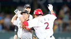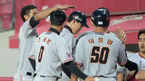[OSEN=광주, 이대선 기자] 15일 오후 광주-KIA챔피언스필드에서 '2015 타이어뱅크 KBO 리그' KIA 타이거즈와 한화 이글스의 경기가 열렸다. 1회초 2사 만루 한화 강경학의 좌전 적시타 때 홈을 밟은 김회성과 이성열이 더그아웃에서 로
