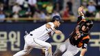 [OSEN=잠실, 최규한 기자] 15일 오후 서울 잠실야구장에서 '2015 타이어뱅크 KBO 리그' 두산 베어스와 롯데 자이언츠의 경기가 열렸다. 2회초 롯데 공격 무사 1루 상황 최준석 타석 때 주자 아두치가 2루 도루를 시도했지만 두산 2루