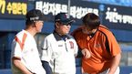 [OSEN=잠실, 최규한 기자] 15일 오후 서울 잠실야구장에서 열리는 '2015 타이어뱅크 KBO 리그' 두산 베어스와 롯데 자이언츠의 경기를 앞두고, 두산 김태형 감독과 롯데 이종운 감독, 최준석이 인사를 나누고 있다. 홈팀 두산은 허준